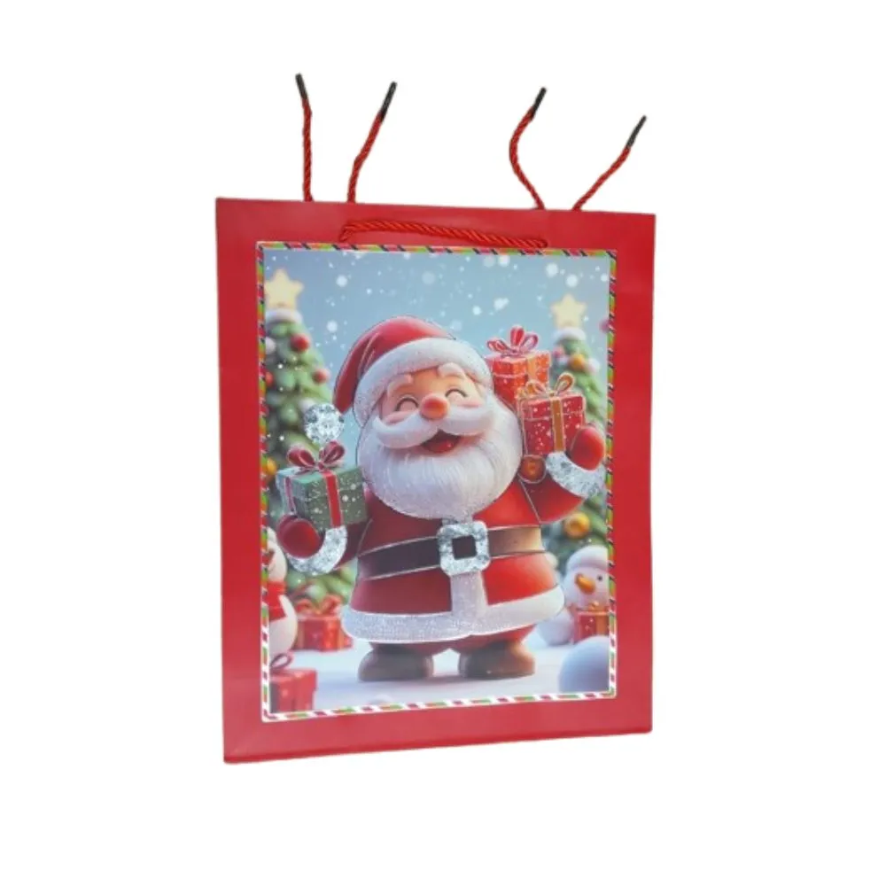 Sorprende a tus seres queridos con esta hermosa bolsa de regalo de 26x10x32cm decorada con motivos navideños. Perfecta para envolver tus obsequios con estilo y darle un toque mágico a cada presente. Ideal para regalos grandes o pequeños, resistente y reutilizable.