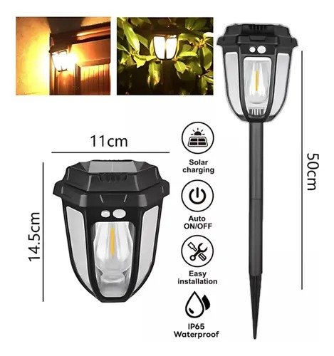 Decora e ilumina tus espacios exteriores con este farol solar LED de luz cálida, ideal para jardines, caminos, patios o entradas. Su diseño clásico con estaca permite colocarlo fácilmente en el césped o macetas, sin necesidad de cables ni instalaciones complicadas.
