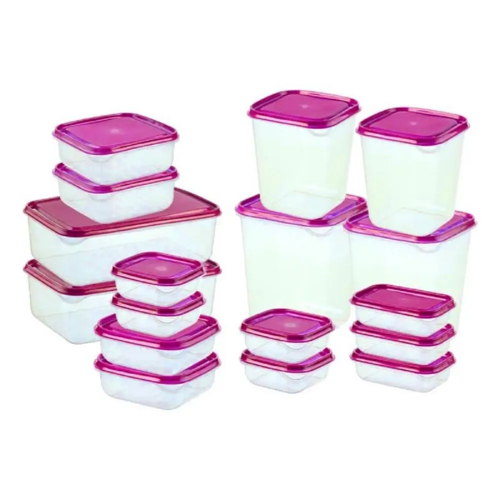 Organiza tu cocina con este práctico juego de 17 recipientes herméticos ideales para guardar alimentos secos, cereales, pastas, frutas o sobras. Cada recipiente cuenta con tapa de cierre seguro y sellado hermético que mantiene la frescura por más tiempo. Su diseño apilable ahorra espacio en la despensa o refrigerador, y sus diferentes tamaños se adaptan a todas tus necesidades de almacenamiento. Perfectos para mantener tu cocina limpia, ordenada y tus alimentos siempre frescos