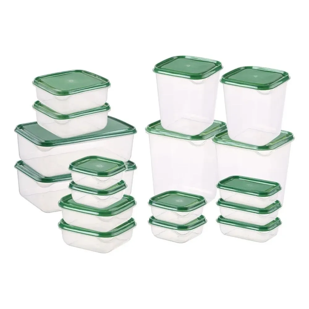Organiza tu cocina con este práctico juego de 17 recipientes herméticos ideales para guardar alimentos secos, cereales, pastas, frutas o sobras. Cada recipiente cuenta con tapa de cierre seguro y sellado hermético que mantiene la frescura por más tiempo. Su diseño apilable ahorra espacio en la despensa o refrigerador, y sus diferentes tamaños se adaptan a todas tus necesidades de almacenamiento. Perfectos para mantener tu cocina limpia, ordenada y tus alimentos siempre frescos