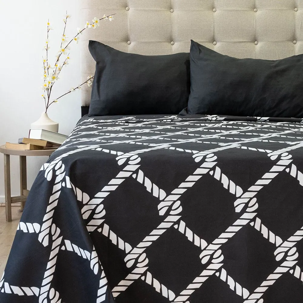 Incluye 1 sábana superior de 210 x 245 cm, 1 sábana inferior de 150 x 200 cm y 2 fundas de almohada de 50 x 75 cm, perfectas para camas de dos plazas. Resistente, fácil de lavar y de rápido secado, este juego de sábanas combina diseño, durabilidad y suavidad, aportando estilo y comodidad a tu dormitorio.