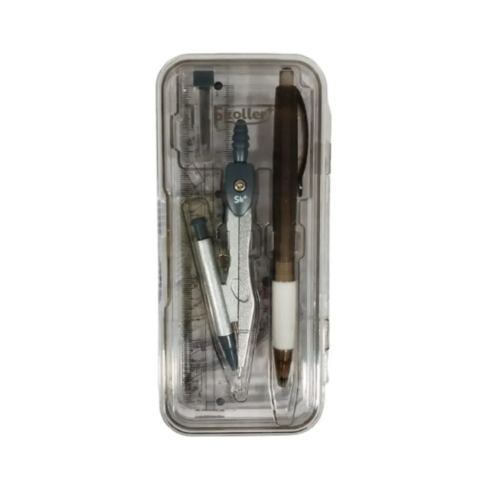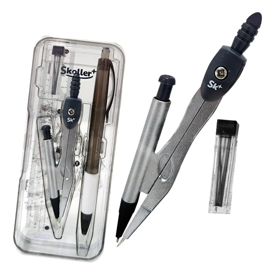 El Kit Geométrico Skoller de 7 piezas es ideal para estudiantes, docentes y profesionales que buscan precisión y durabilidad en sus trazos. Incluye juego de compás, juego geométrico completo y portaminas, perfectos para clases de matemáticas, dibujo técnico y geometría.