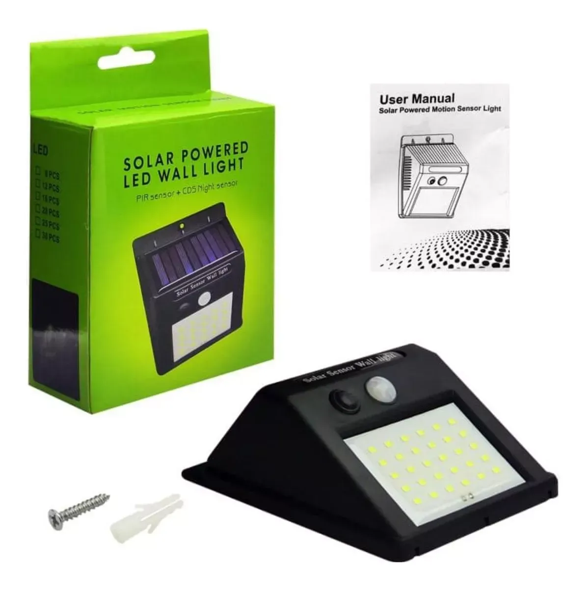Ilumina y protege tus espacios exteriores con esta lámpara solar LED para pared con sensor de movimiento PIR y sensor nocturno CDS. Funciona de manera automática gracias a su panel solar de alta eficiencia (17%), cargándose durante el día y encendiéndose por la noche cuando detecta movimiento.