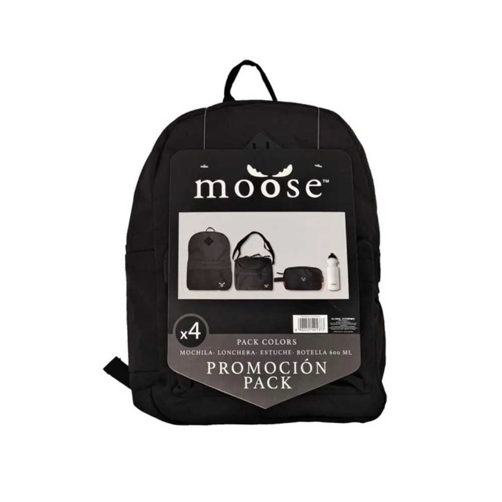 Pack Escolar Moose Black Colors | Mochila + Botella 600 ml + Lonchera + Estuche