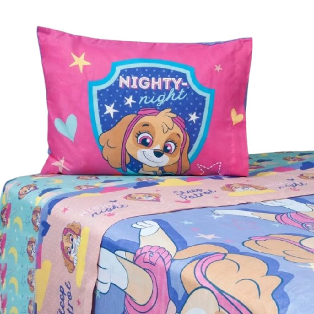 Dale a la habitación de tu pequeña un toque divertido y colorido con esta sábana de 1,5 plazas de Paw Patrol con el personaje Sky. Fabricada en material suave y cómodo, ideal para garantizar un descanso reparador. Perfecta para camas individuales o matrimoniales pequeñas, esta sábana combina diseño infantil encantador con resistencia y facilidad de lavado, convirtiéndola en una opción práctica y alegre para niñas fanáticas de Paw Patrol.