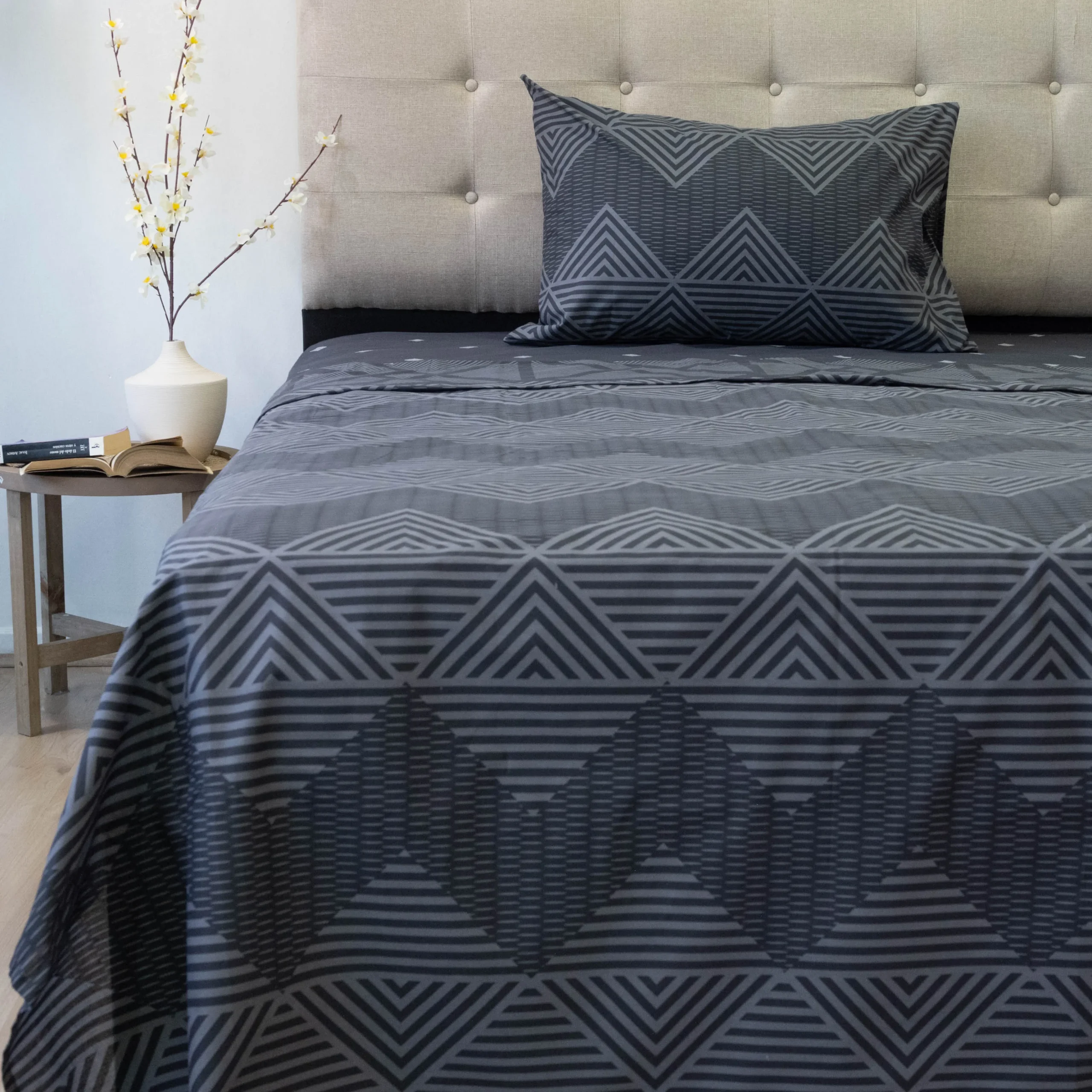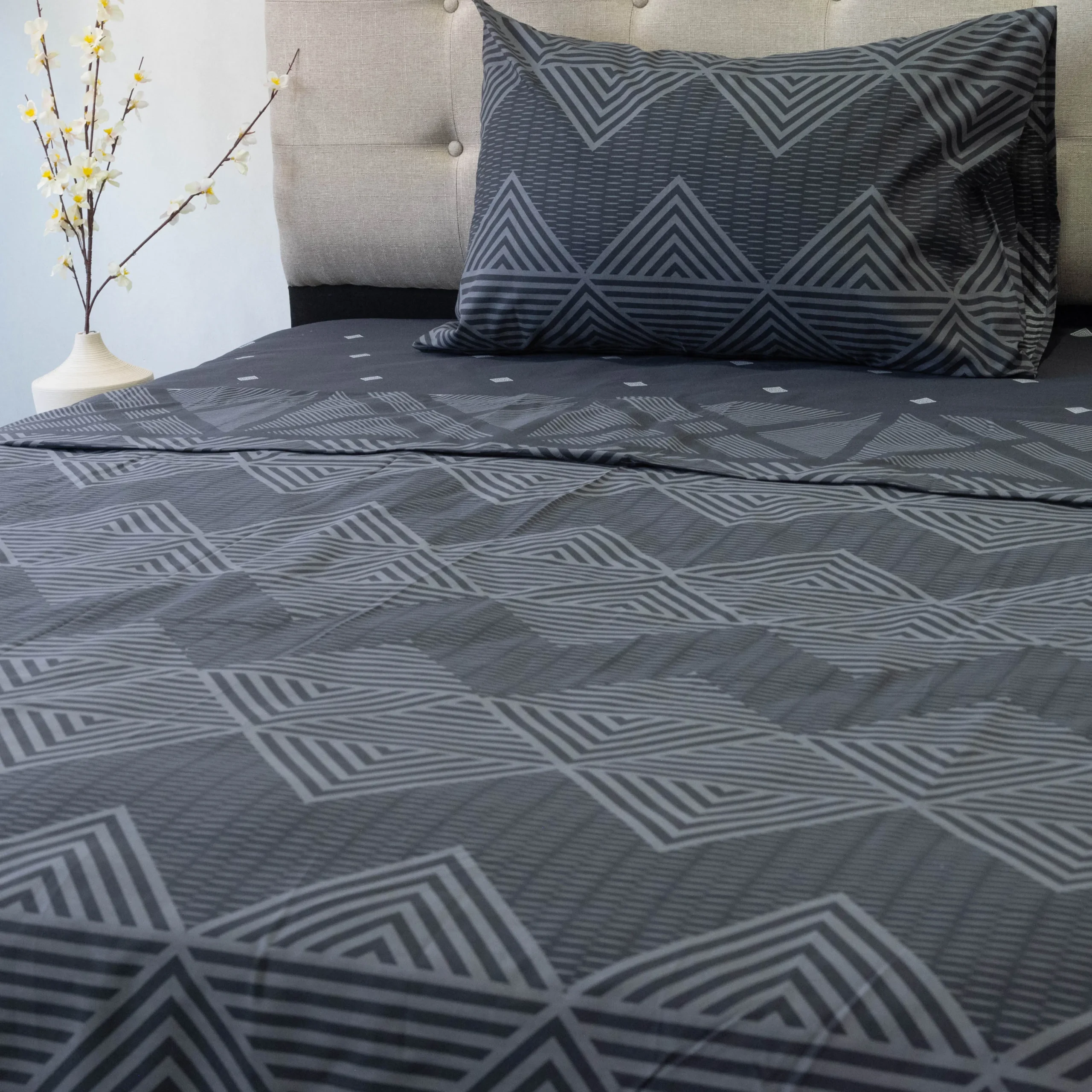 El juego incluye sábana ajustable, sábana plana y funda de almohada, ideales para una cama de 1 plaza. Su diseño Composé aporta un toque moderno y elegante a tu dormitorio, combinando estilo y confort en cada noche.