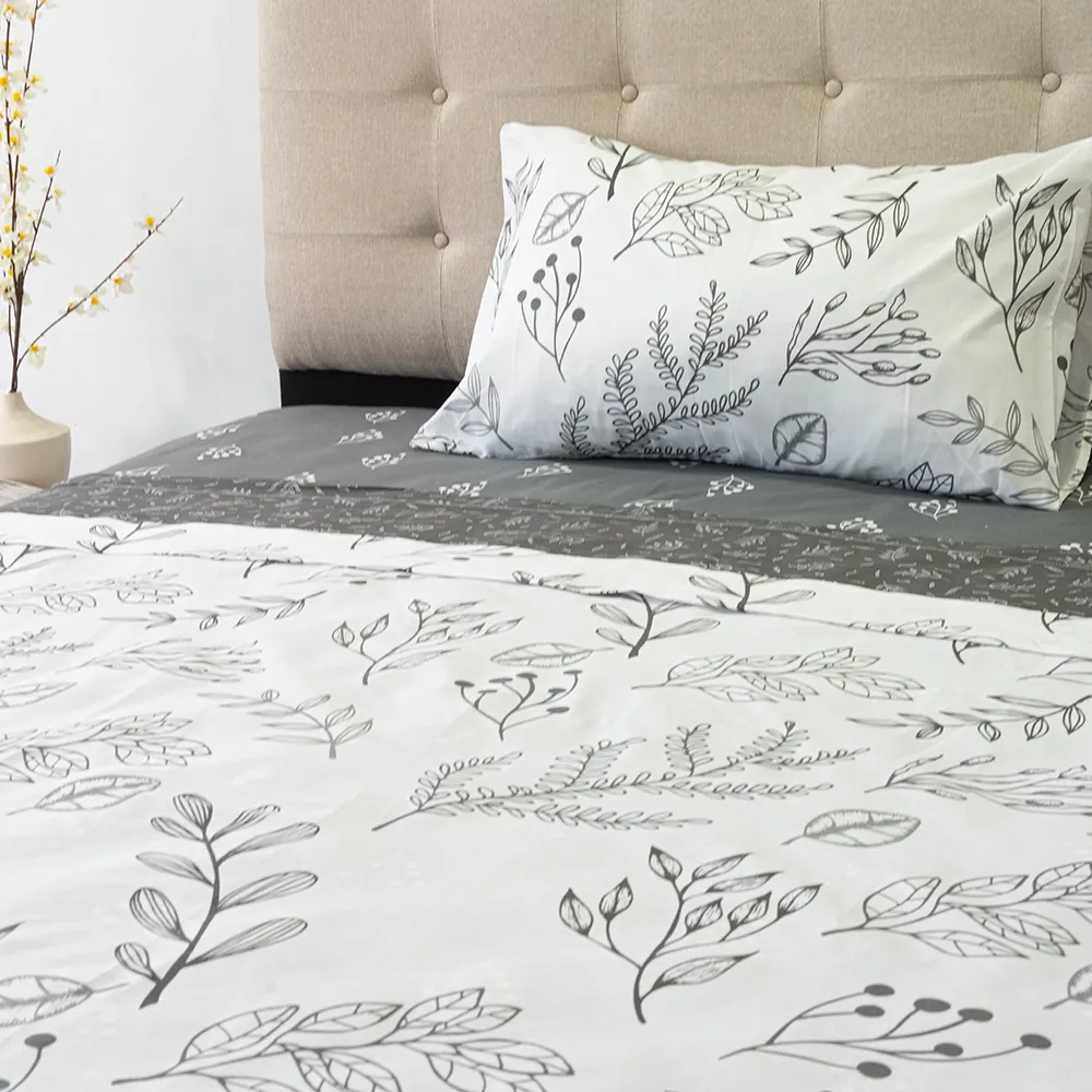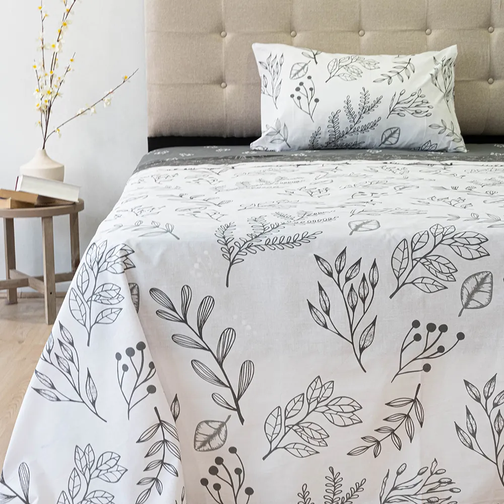 El juego incluye sábana ajustable, sábana plana y funda de almohada, ideales para una cama de 1 plaza. Su diseño Composé aporta un toque moderno y elegante a tu dormitorio, combinando estilo y confort en cada noche.