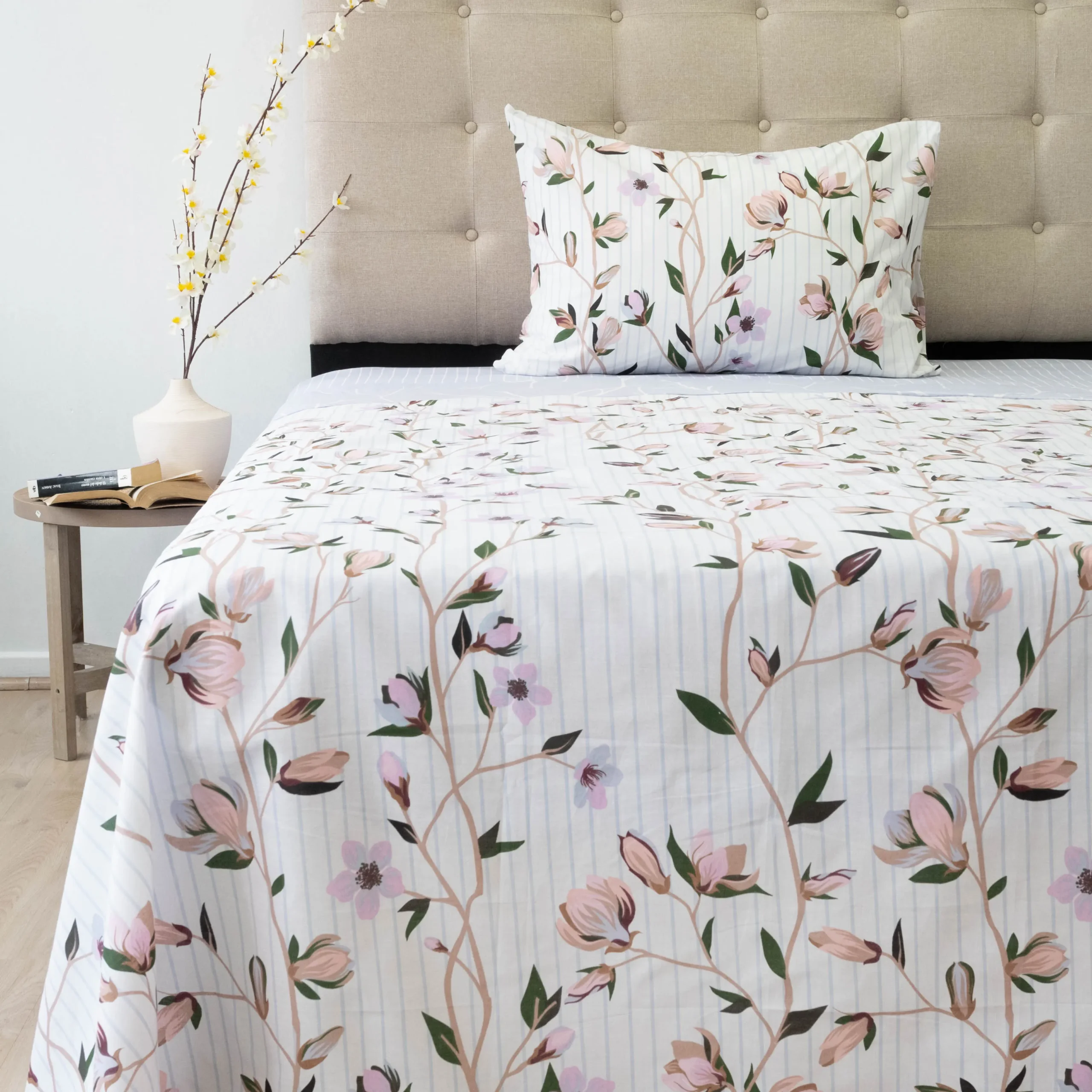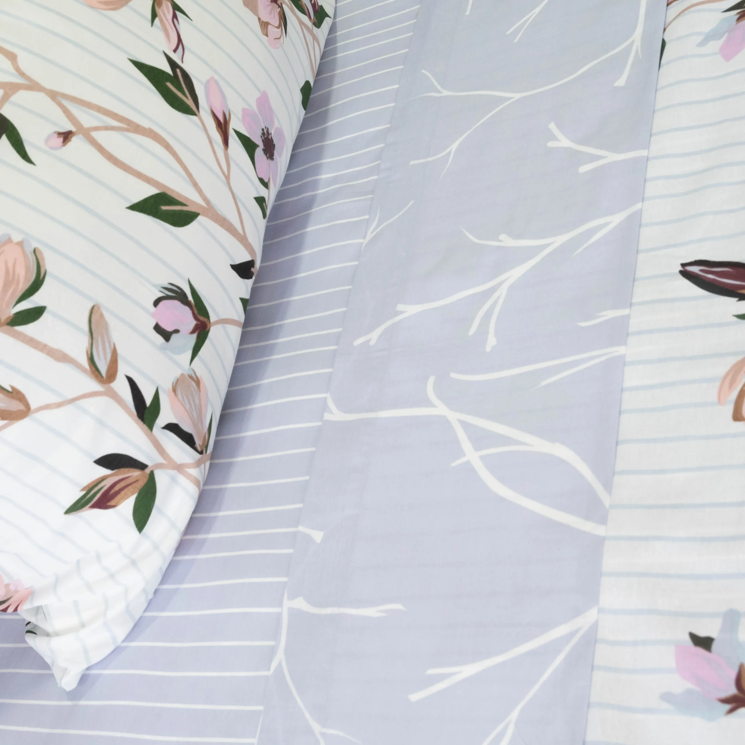 El juego incluye sábana ajustable, sábana plana y funda de almohada, ideales para una cama de 1 plaza. Su diseño Composé aporta un toque moderno y elegante a tu dormitorio, combinando estilo y confort en cada noche.