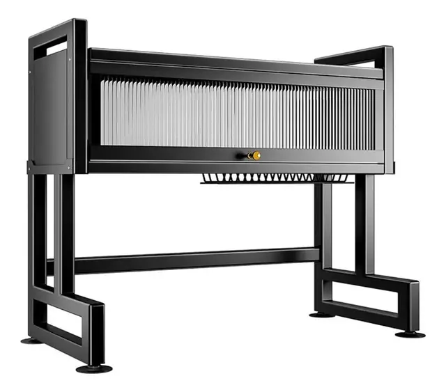 Optimiza el espacio en tu cocina con este escurridor metálico de lujo, diseñado para colocarse sobre el fregadero. Cuenta con dos niveles amplios y puertas frontales que protegen la vajilla del polvo y mejoran la organización.