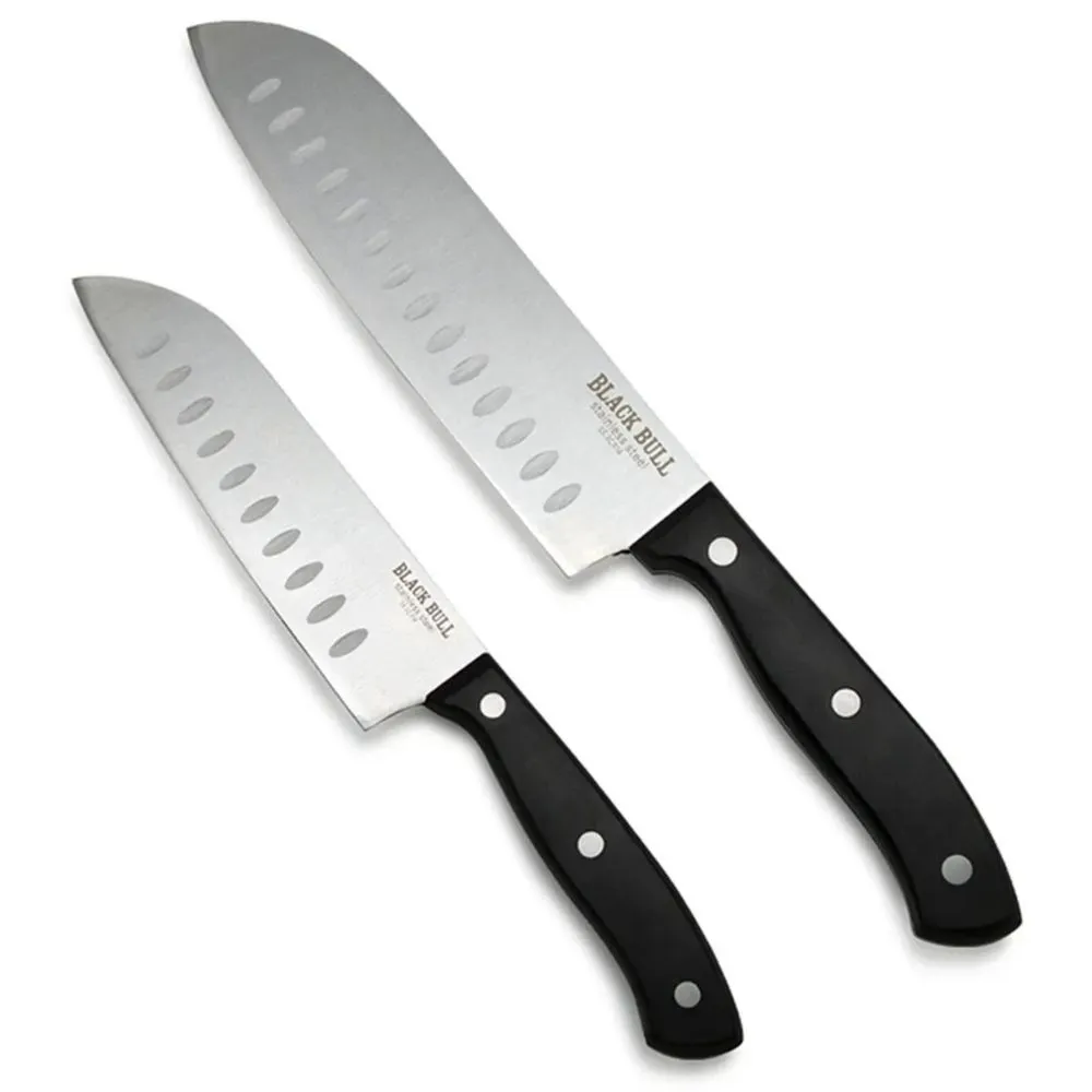 El Set de 2 Cuchillos Santoku Texas Black Bull combina versatilidad, precisión y diseño profesional, ideal para todo tipo de cocinas. Incluye un cuchillo Santoku de 7 pulgadas y un Santoku de 5 pulgadas, perfectos para cubrir tareas de corte grandes y trabajos más precisos.