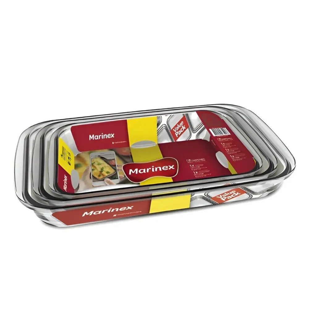 El set de 3 asaderas rectangulares Marinex es ideal para cocinar, hornear y gratinar todo tipo de preparaciones. Fabricadas en vidrio templado de alta resistencia, son aptas para horno y garantizan una cocción pareja y segura.