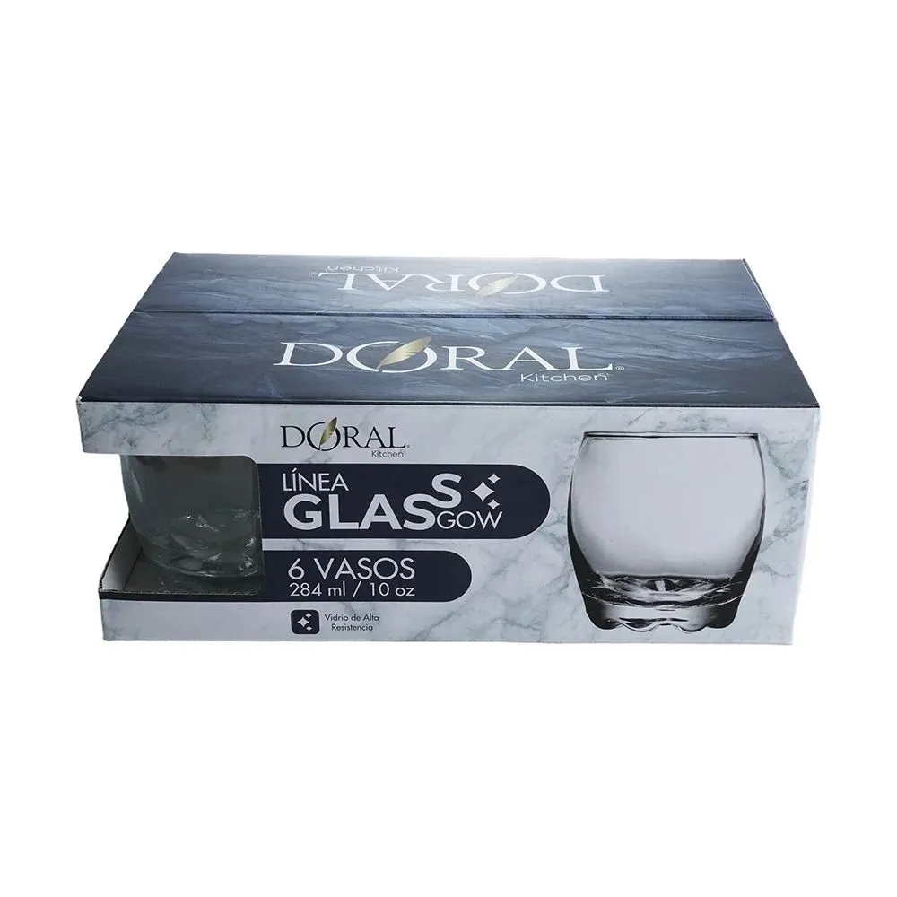El Set de 6 Vasos Doral – Línea Glasgow Bossa Corto combina elegancia, resistencia y un diseño moderno que aporta estilo a cualquier mesa. Fabricados en vidrio de alta resistencia, estos vasos cortos destacan por su forma redondeada y base gruesa, lo que les brinda estabilidad y un aspecto sofisticado ideal para uso diario o para ocasiones especiales.