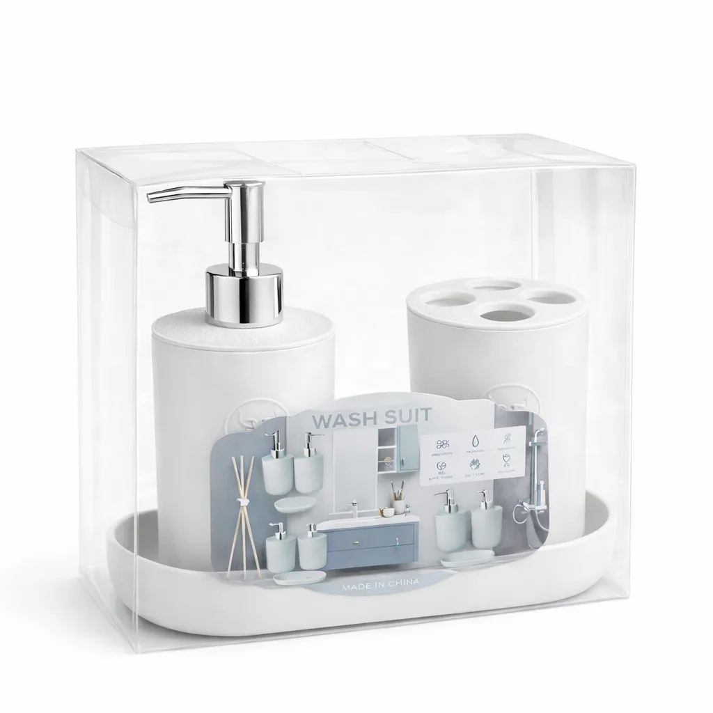 Set de Accesorios de Baño Blanco 3 Piezas con Dispensador y Porta Cepillos – Wash Suit