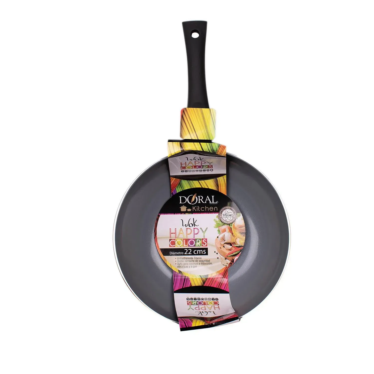Disfruta de la cocina saludable y práctica con el Wok Happy Colors de 22 cm. Fabricado en aluminio ligero y resistente, cuenta con fondo de titanio que garantiza una distribución uniforme del calor y excelente durabilidad. Su superficie antiadherente facilita la cocción sin exceso de aceite y la limpieza rápida. Ideal para saltear, freír o preparar tus recetas favoritas al estilo oriental. Compacto, colorido y funcional, es la pieza perfecta para tu cocina.